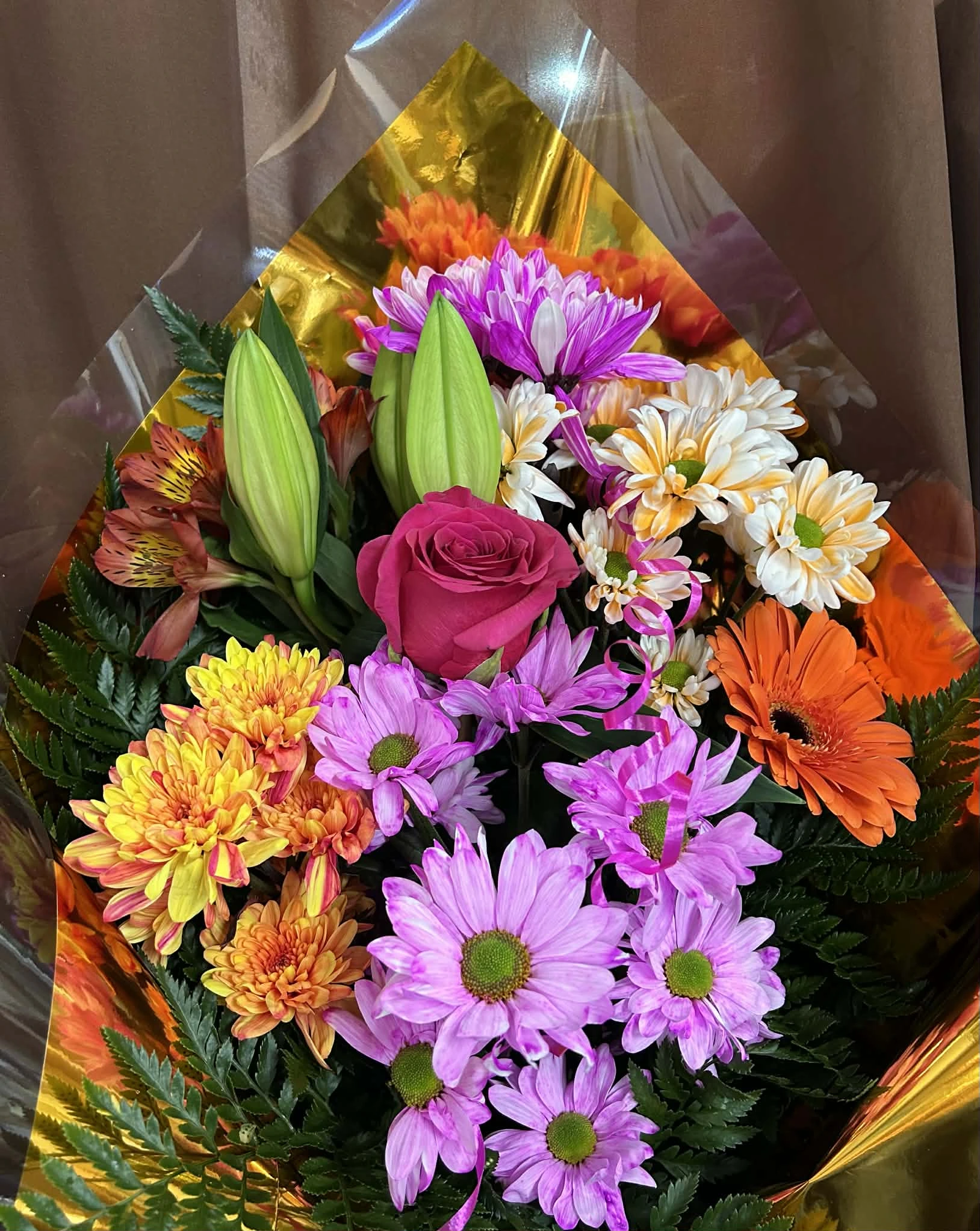 Les teintes intenses d’orange et de fuschia offrent un contraste saisissant qui capte immédiatement le regard. Chaque fleur est soigneusement sélectionnée pour créer un bouquet équilibré, idéal pour transmettre des émotions fortes et positives.